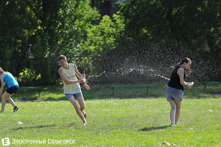 Затем все участники пошли к ближайшей водной колонке, чтобы наполнить бутылки и устроить второй акт веселого противостояния. В войне полов, по словам ребят, зафиксирована ничья. Наверное, это как раз тот самый случай, когда самое главное - участие и отличные эмоции.