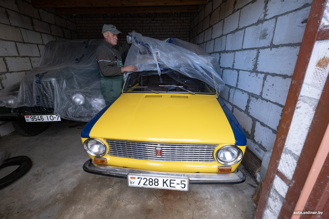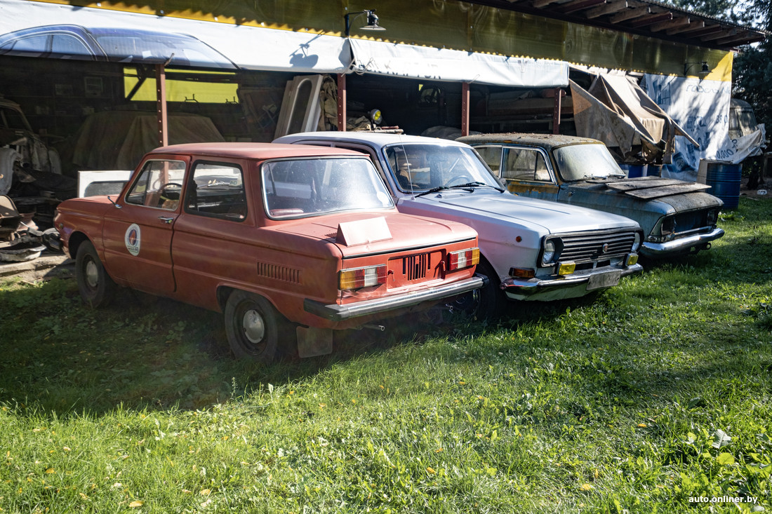 В коллекции Владимира около 40 машин: примерно 15 из них восстановлены и готовы в любой момент принять участие в какой-нибудь ретровыставке. Своя мастерская с холодным и теплым цехом у нашего героя есть на одном участке с его домом — навесы скрывают бесчисленное количество запчастей и уставших (или не очень) кузовов. Еще одна мастерская находится на территории школы. Несколько гаражей с машинами разбросаны по Козловичам и Слуцку. Какие-то принадлежат Владимиру, другие он арендует.