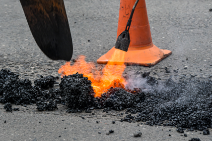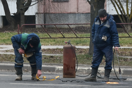 В Солигорске продолжается ямочный ремонт методом “холодного асфальта”.