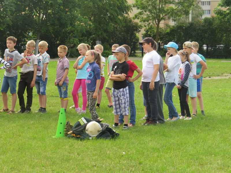 На гэты раз ратавальнікі наведалі прышкольны аздараўленчы лагер ДУА «Гімназія №2 г. Салігорска», дзе з дзецьмі правялі пажарна-спартыўную эстафету. Дзеці спаборнічалі ў розных конкурсах: «Пажарныя вучэнні», «Мы вадой затушым полымя», «Апрані пажарнага», «Перанос пацярпелага», «Выклік пажарнай службы «101».