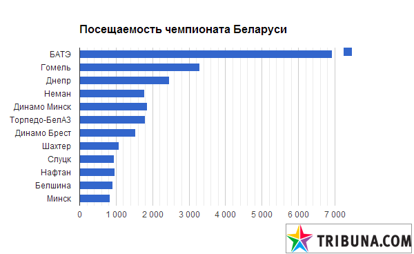 Спортивный портал Tribuna.com приводит статистику посещаемости матчей команд высшей лиги Чемпионата Беларуси по футболу.