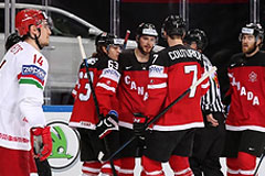 Сборная Беларуси крупно уступила Канаде в 1/4 финала чемпионата мира по хоккею 0:9 и завершила борьбу на турнире.