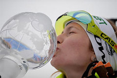 Лучшая белорусская биатлонистка Дарья Домрачева впервые стала обладательницей Большого хрустального глобуса, победив в общем зачете Кубка мира.