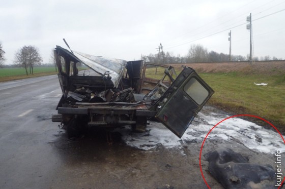 «Слуцк, поворот на мясокомбинат. Уазик типо "таблетка" перевозивший газовые болоны в кузове загорелся, — написал форумчанин (орфография и пунктуация сохранены). — Пламя очень быстро охватило машину, водитель с пассажирами вспешке вытаскивали болоны. Приехали МЧС, не успели размотать рукава как машина взорвалась (видимо бензобак) весь зад разворотило, на видео, на 19-й секунде, видно как отлетели часть крыши и вроде задняя дверька. Пострадавших вроде нет», - так описывает происшествие очевидец.