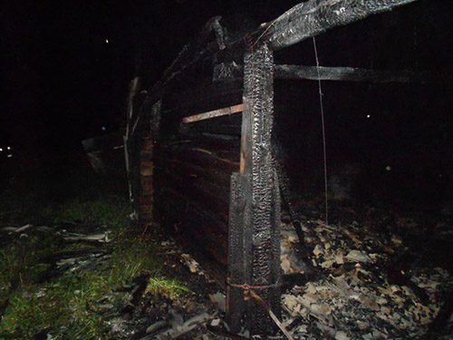 В результате пожара уничтожен деревянный сарай 3х8 м. В сарае хранилась хозяйственная утварь.