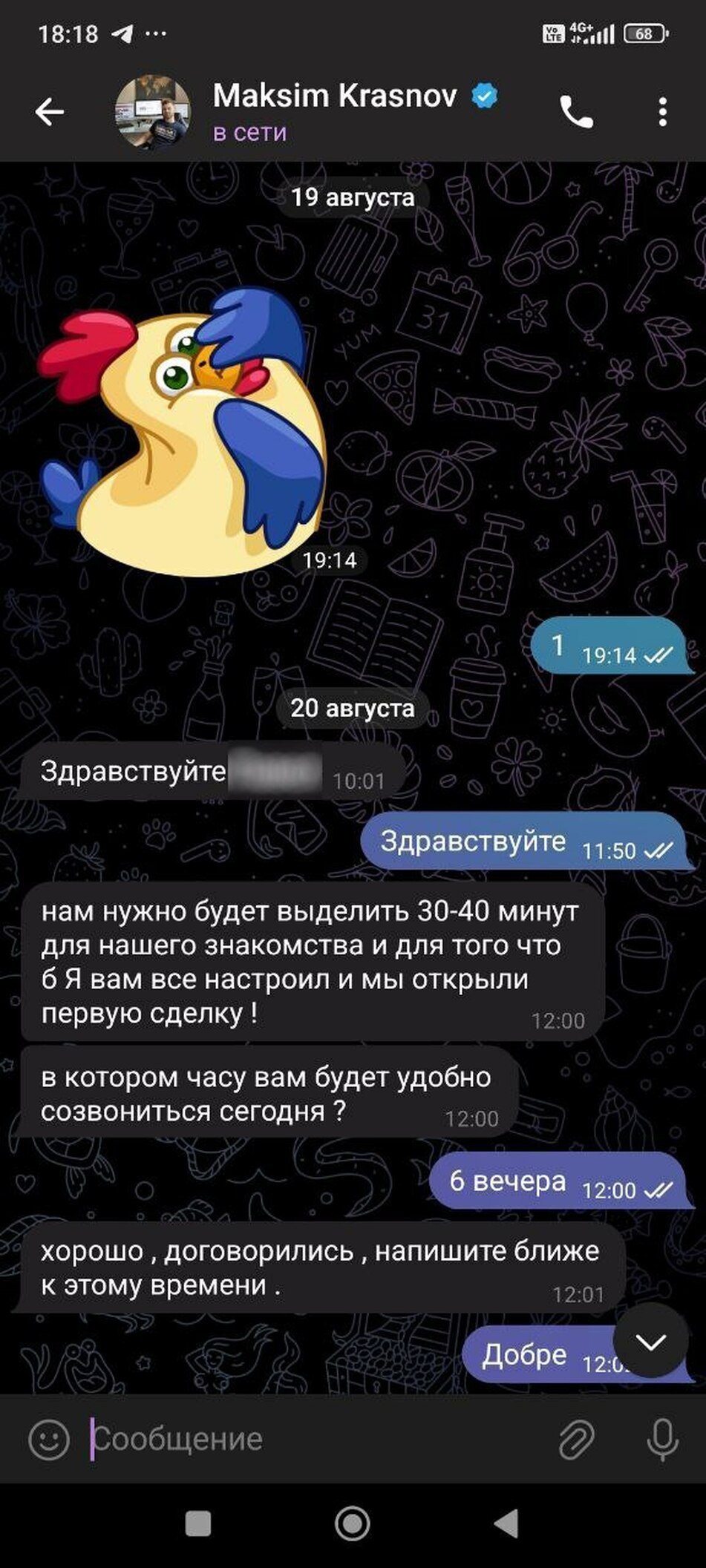 В реальности он просто переводил свои накопления в обмен на лживые обещания дохода и картинки графиков, которые присылали ему мошенники в мессенджере.