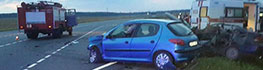 10 июля около 08.35 на 29 км автодороги Минск-Микашевичи, вблизи д. Вишневка Минского района, 28-летний водитель житель г. Слуцка, двигаясь на автомашине Фольксваген Транспортер в направлении г. Слуцка, совершил попутное столкновение с трактором CASE под управлением 41-летнего тракториста-машиниста, после чего водитель автомашины Фольксваген выехал на вторую полосу движения, где совершил столкновение с двигавшимся по ней в попутном направлении автомобилем Ауди А-6 под управлением 53-летнего водителя.