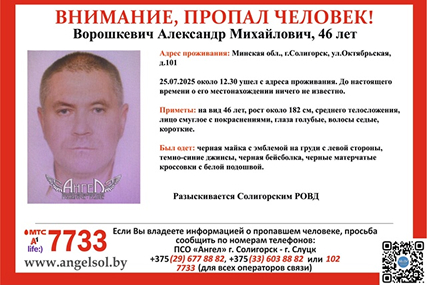 Пропал Ворошкевич Александр Михайлович (46 лет), проживающий по адресу: г.Солигорск, ул.Октябрьская, д.101.