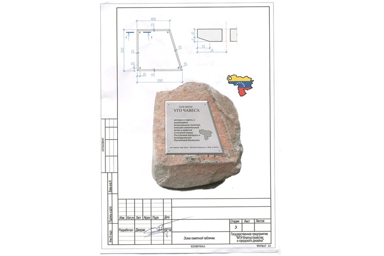 На центральном островке установят гранитный камень с памятной табличкой. За ним разместят два флагштока, на которых будут развеваться флаги Венесуэлы и Беларуси.