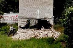 Очевидцем сноса старой водонапорной башни в Заславле стал участник форума Onliner.by, зарегистрированный под ником dot13. На снятом им видеоролике видно, как многометровое сооружение демонтируют при помощи обычного отбойного молотка, игнорируя технику безопасности. В последний момент, когда кирпичная башня начинает рушиться, двое рабочих успевают спастись, отбежав на несколько метров.