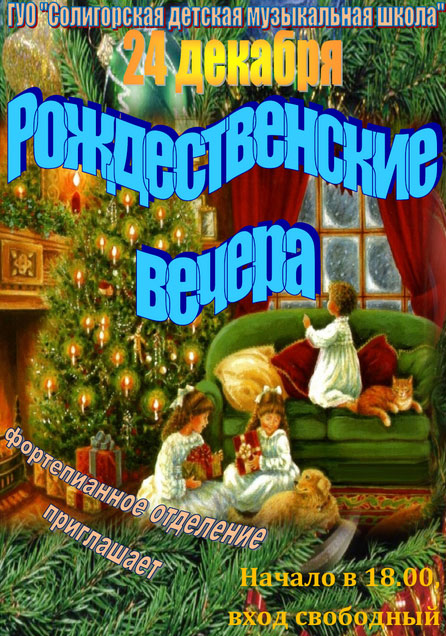 Концерт "Рождественские вечера" состоится 24 декабря в 18.00. Вход - свободный. Адрес музыкальной школы - ул. Ленина, 57.