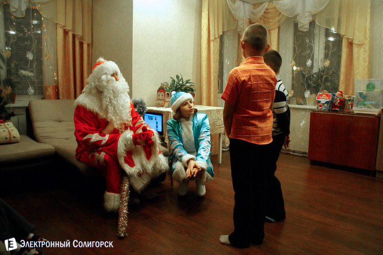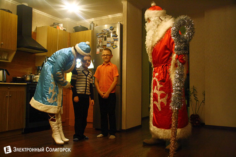 Тем более здорово, когда Дед Мороз со своей внучкой приходят не ночью, просто оставляя подарки под елкой и уходя незамеченными, а специально для молодого человека или юной леди, чтобы вручить вожделенный предмет (фактически заказ - письма то с пожеланиями на Северный полюс шлет детвора) прямо в руки, поводить хоровод, поговорить об уходящем годе и годе наступающем. Корреспонденты "Электронного Солигорска" побывали на подобном мероприятии и дают вам фотоотчет о минутах волшебства.