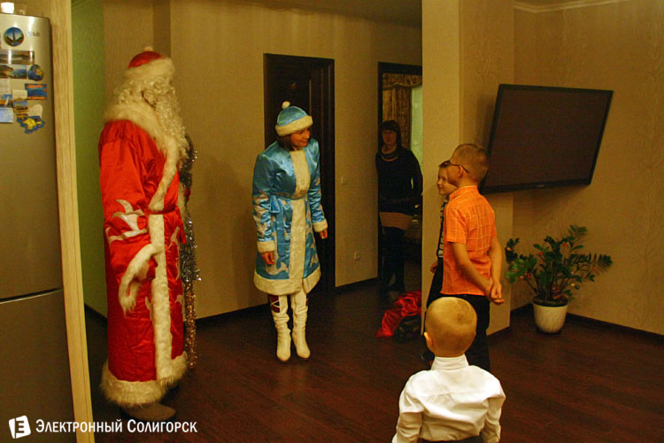 Вчера вечером к одному из домов по ул. Молодежной подъехали герои любого новогоднего мероприятия - Дед Мороз и Снегурочка. Но не на тройке лошадей с бубенцами, а на зеленой "легковушке". Да, в общем-то, на санях не особенно по такой погоде прокатишься.