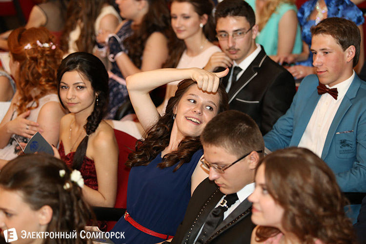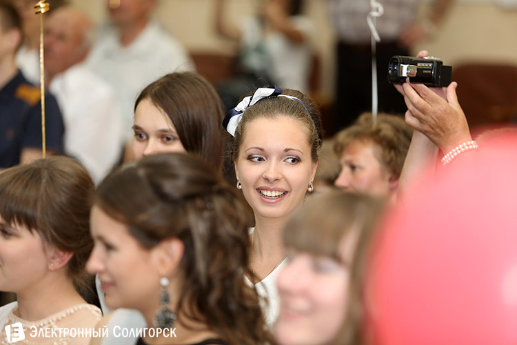 Хотелось нам побывать и в этой школе. Вернее, побывать там получилось, но вот увидеть торжественную часть не довелось. Как выяснилось, местом праздничного концерта был выбран большой зал Центра детского творчества в связи с ремонтом школьного актового зала. А вот банкетная часть выпускного проводилась уже в самой школе. Прибыв на место проведения торжественной части, мы, увы, застали уже направлявшихся к выходу действующих лиц праздника, которых, за неимением иных вариантов, и запечатлели. На этом рейд по школам было решено завершить, ведь везде от официоза постепенно начинали переходить к развлекательным программам.