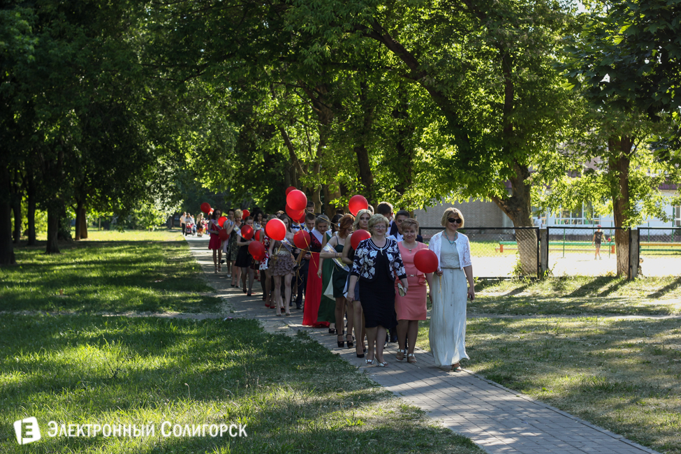 На месте сбора - в центральной части улицы Ленина - к 18.30 все просто утопало в улыбках, красивых нарядах, разноцветных шариках и атмосфере особой торжественности. Более 800 выпускников всех 26 школ Солигорского района вот-вот должны гордо прошествовать к центральной площади. А пока - все заняты построением в колонны и непринужденным позированием многочисленным фотографам.