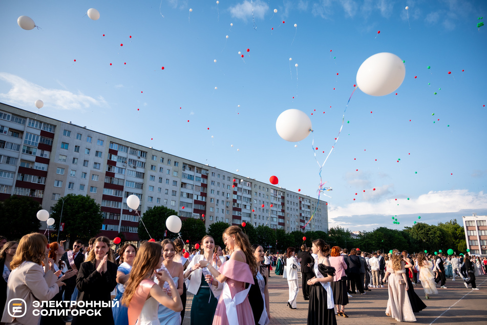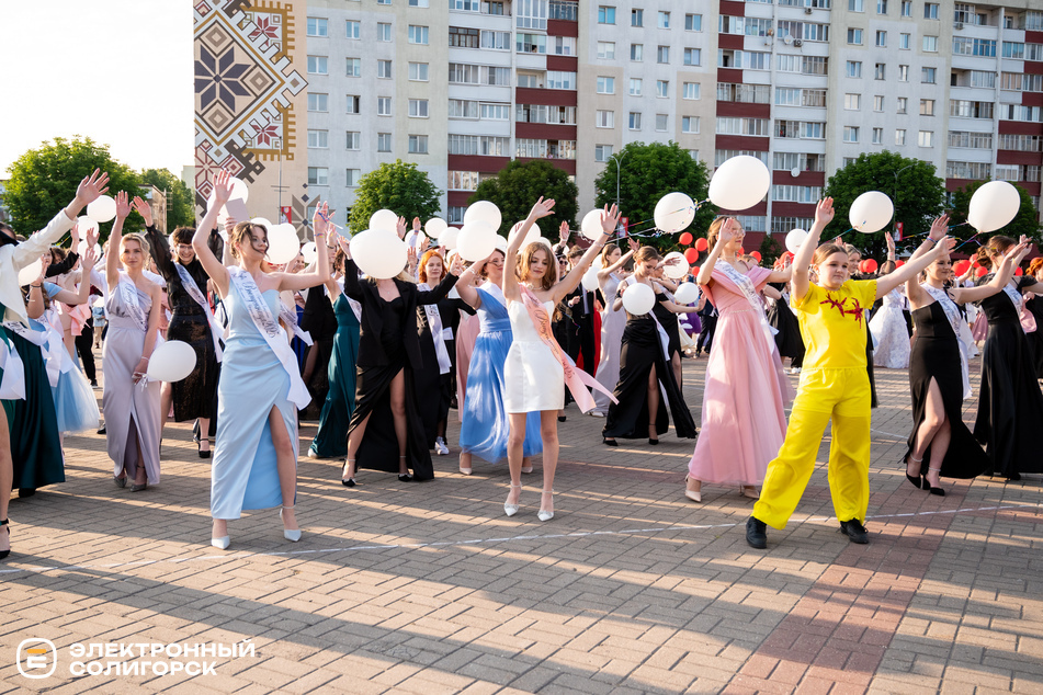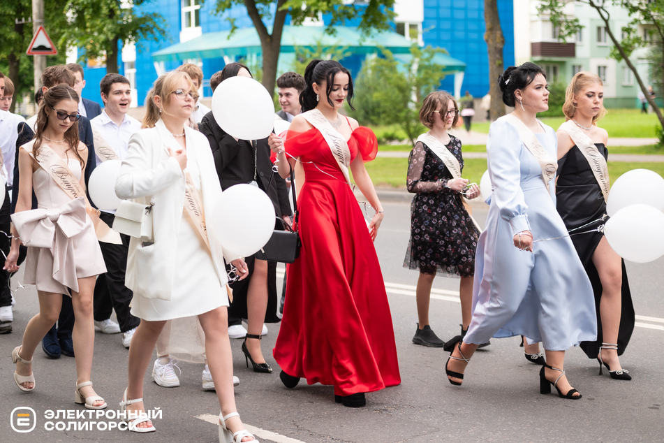 В Солигорске на Центральной площади состоялся выпускной бал. Стартовал он с традиционного шествия выпускников.