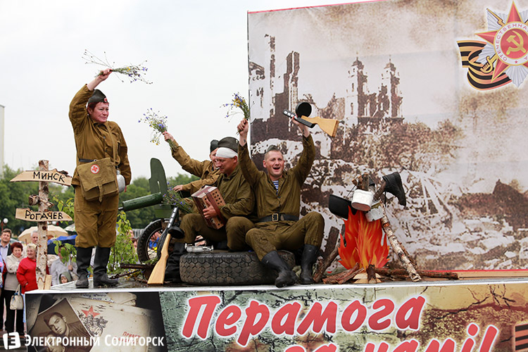 В ходе тематического театрализованного представления с участием передвижных декорация и хореографических коллективов была своеобразно продемонстрирована хроника военных событий середины прошлого века: от нападения на Советский Союз немецких войск до освобождения Беларуси. Минутой молчания была почтена память всех, кто отдал свою жизнь во время военного лихолетья.