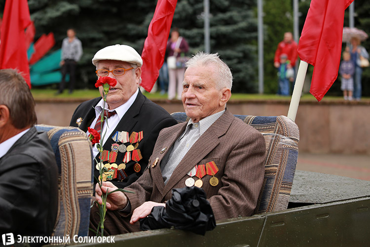 Возглавили праздничную колонны ветераны Великой Отечественной войны в стильных открытых автомобилях.