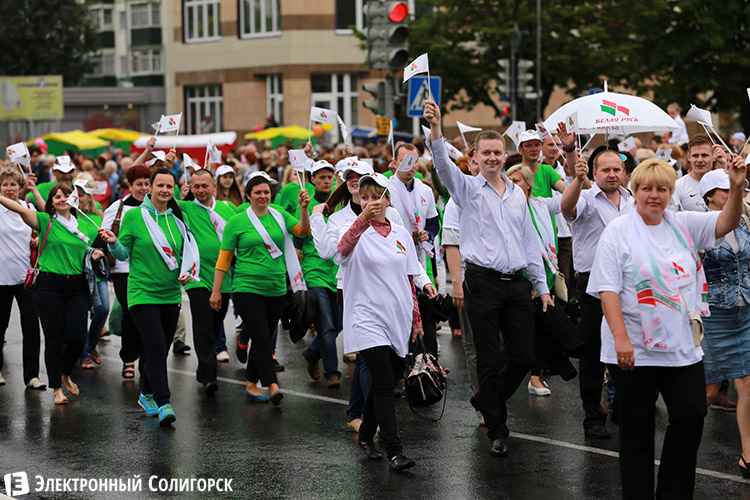 К концу шествия погода все же проявила жалость к празднующим торжество солигорчанам. Дождь прекратился, и ничто уже не мешало нормальному ходу праздника.