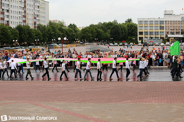 Праздничное шествие "Славим имя твое, Беларусь", состоявшееся 3 июля в центре Солигорска, стало одним из главных событий утренней части торжественных мероприятия, посвященных Дню Независимости Республики Беларусь, 70-летию освобождения Беларуси от немецко-фашистских захватчиков и 90-летию Солигорского района.