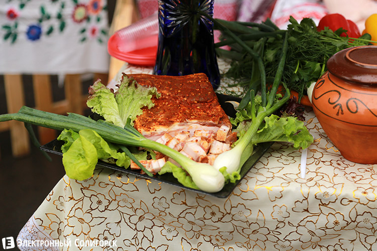 Затем внимание официальных гостей надолго было приковано к стендам выставки-презентации подворий сельскохозяйственных организаций и сельсоветов Солигорского района "Подворье-2014". Каждое из представленных подворий представило на суд первых лиц района свои достижения в области приготовления шедевров национальной кухни из сырья собственного производства.