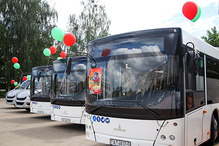 Пять новых автобусов пополнили солигорский автопарк. Водителям вручили ключи в торжественной обстановке на площади