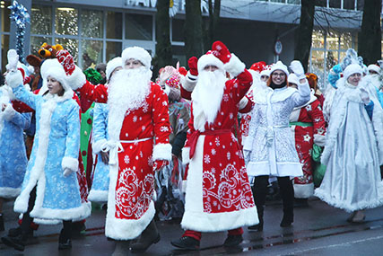 29 декабря В Солигорске состоялся традиционный парад Дедов Морозов, Снегурочек и сказочных персонажей. Яркое костюмированное шествие прошло по центральной улице города, поздравляя по пути всех с Новым годом. А завершилось праздничное мероприятие общим новогодним танцем и хороводами вокруг ёлки на Центральной площади.