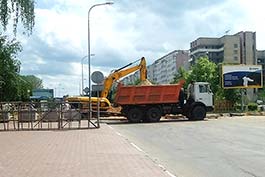 Участок улицы Ленина возле поворота на улицу Коржа перекрыт для движения автотранспорта в связи с проводимыми работами по реконструкции территории возле здания управления ОАО "Беларуськалий".