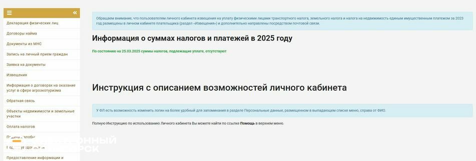 Готово. Вы вошли в личный кабинет, где вы можете увидеть различную информацию, например, о суммах налогов и других платежей.