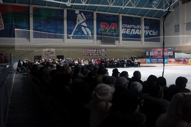 Государственный балет на льду Санкт-Петербурга (бывший Ленинградский государственный балет на льду) приезжал в Солигорск 24 февраля со знаменитым балетом "Лебединое озеро".Государственный балет на льду Санкт-Петербурга основан в 1967 году выдающимся русским хореографом Константином Боярским. Он показывает самые известные балеты П.Чайковского: "Спящая красавица", "Лебединое озеро", «Щелкунчик» и балет на музыку С.Прокофьева "Золушка". В течение десяти последних лет эти спектакли были с успехом представлены на лучших сценах США, Канады, Нидерландов, Германии, КНР, Южной Кореи, Тайваня, Греции, Португалии, Испании, Ирландии.