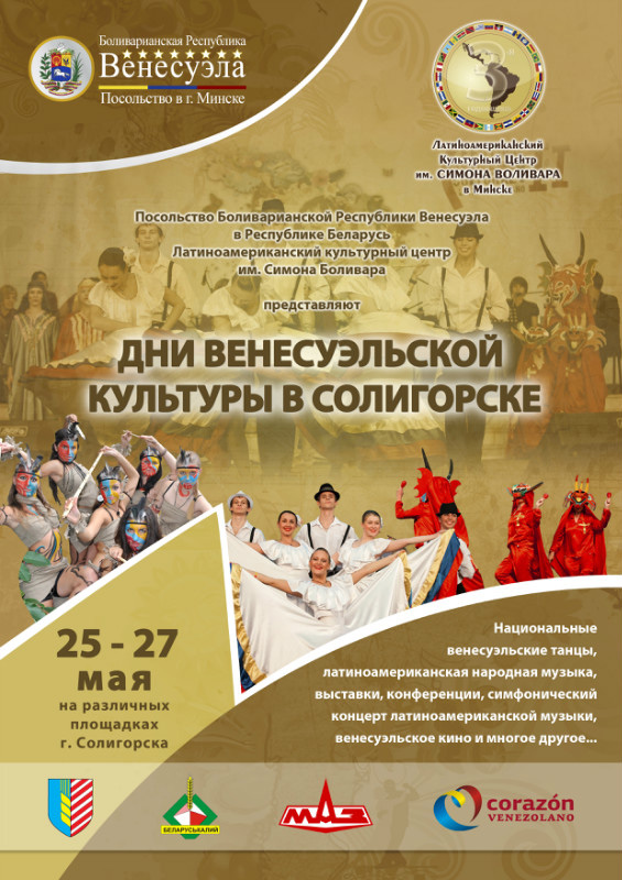 Предстоящие выходные обещают солигорчанам богатую культурную и развлекательную программу. Горожане смогут насладиться не только празднованием "Дня химика", но и окунуться в атмосферу Венесуэльской культуры.Гости из Латинской Америки посетят Солигорск и другие белорусские города в честь празднования третьей годовщины образования Латиноамериканского культурного центра имени Симона Боливара.