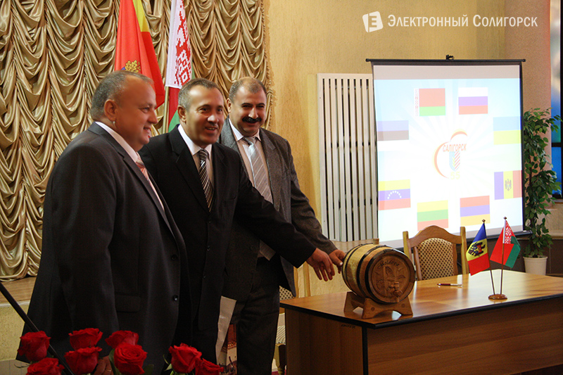 После подписания договора каждый из зарубежных гостей имел возможность высказать теплые слова и пожелания Солигорску в честь праздника и вручить подарки. Первыми частичкой солнечной виноградной Молдовы с уже состоявшимися солигорскими побратимами поделились представители города Чадыр-Лунга.