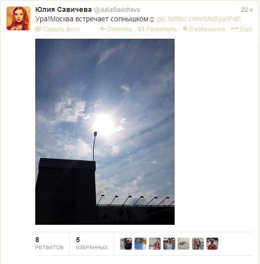 Конечно же, мы никак не могли обойти стороной аккаунт Юлии Савичевой в твиттере: