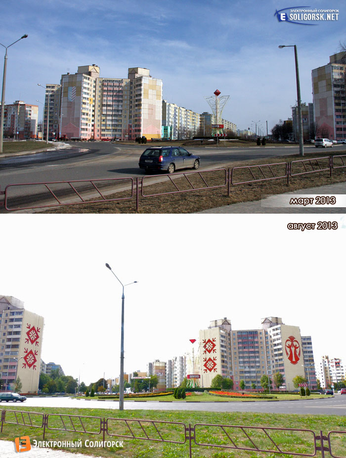 В текущем году Солигорск видоизменяется рекордно быстрыми темпами. Стремительно растут новые объекты, приобретают современный имидж улицы, фасады домов... Иной человек, по каким-либо причинам отсутствовавший несколько месяцев в городе, может и не узнать отдельные уголки, поменявшие свой привычный облик.