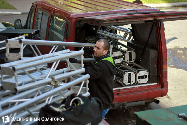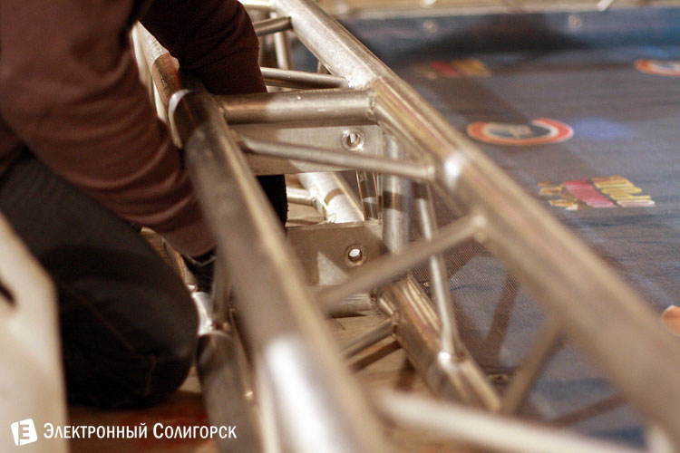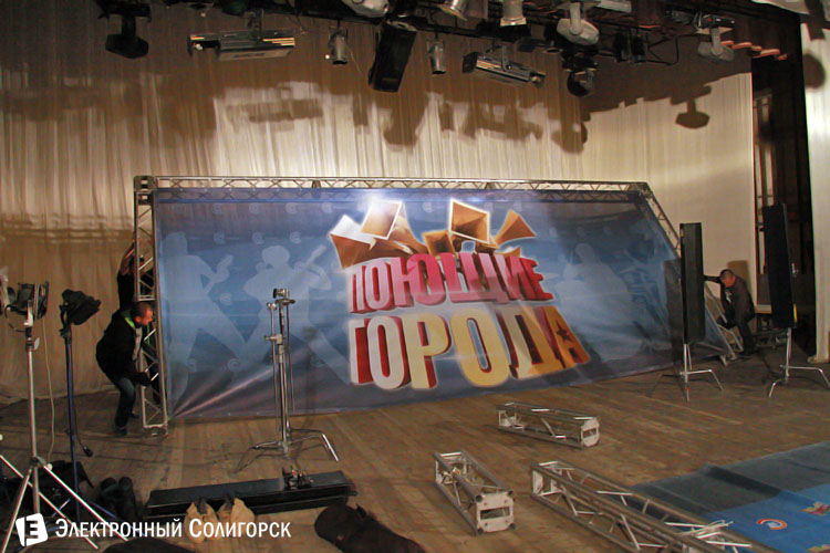 Корреспонденты "Электронного Солигорска", побывав во Дворце культуры на кастинге проекта "Поющие города-2", сделали не только фоторепортаж и видеоролик непосредственно об этом мероприятии, но и обратили свой взор на процесс подготовки сцены и оборудования к его проведению. Стоит вспомнить, что в этот же день точно такой же кастинг проходил в Слуцке. Проходил раньше солигорского и, видимо, поэтому съемочная группа и жюри не поспели к объявленным ранее 17.00. Когда же съемочная площадка начала приобретать более-менее завершенный вид, стало понятно, что на сцене ДК появляется своеобразная комната и зрительному залу не будет видно практически ничего (хотя, там было мало именно зрителей, в основном участники, да и это все-таки телевизионный проект). Выглядело это вот так: