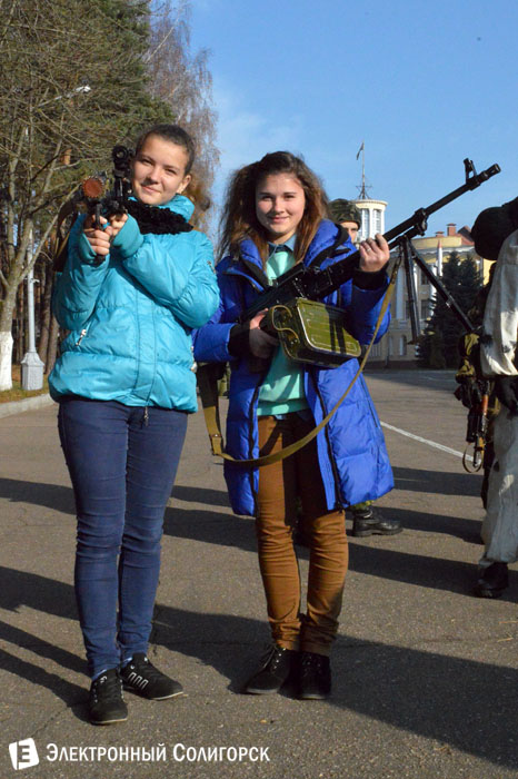 На плацу академии была открыта выставка современного вооружения. У ребят была возможность сфотографироваться с настоящими пулеметами, автоматами, винтовками и ощутить в руках вес боевого оружия. Приятно было отведать настоящей и очень вкусной солдатской каши и чая. Гости из Солигорска смогли пообщаться с курсантами, которые отвечали на интересующие ребят вопросы. После впечатляющего посещения военной академии полковником Леоновичем Г.А. была предложена экскурсия в Национальную Библиотеку Республики Беларусь. Библиотека встретила ребят красивыми и уютными залами. Был посещен Музей книги и обзорная площадка, которая расположена на самой вершине здания. После поездки у ребят остались очень весомые впечатления, хорошие воспоминания и благодарность организаторам этого мероприятия: военному комиссару Солигорского военкомата Заинчковскому В. В., зампредседателя Солигорского райисполкома Маскевичу Н.И., полковнику Военной академии Леоновичу Г.А.