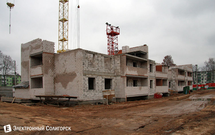 В настоящее время строители возвели первые два этажа здания, а в перспективе в новом доме будет 2 подъезда разной этажности – 7 и 8 этажей, квартиры строятся 1-2-3-х комнатные. Возводится дом из белого силикатного кирпича, торцы будут утеплены минераловатными плитами, а стены отделаны штукатуркой по армирующей сетке, оригинально окрашены согласно проекту.
