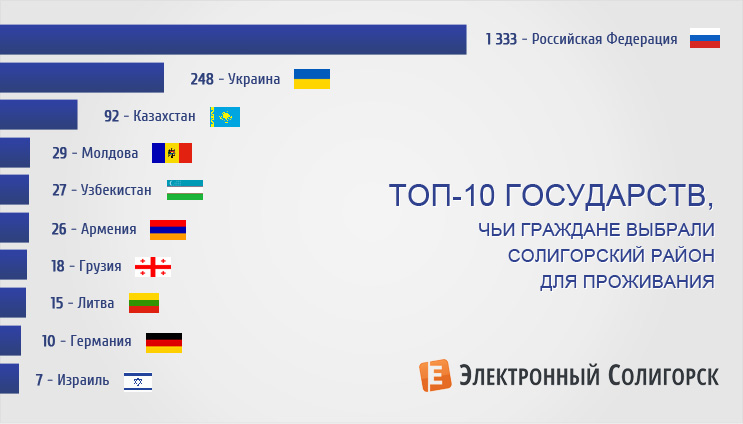 Среди не самых очевидных стран, чьих граждан занесло на ПМЖ в Солигорский район, можно выделить Германию (10), Канаду (6), Нигерию (2) и по одному представителю Италии, Великобритании, Ирана, Ирака, Кот д`Ивуара, Марокко и даже Доминиканской Республики.