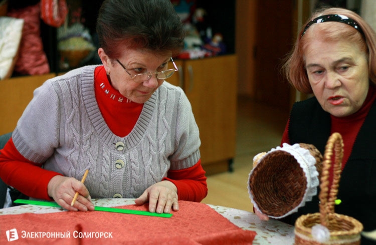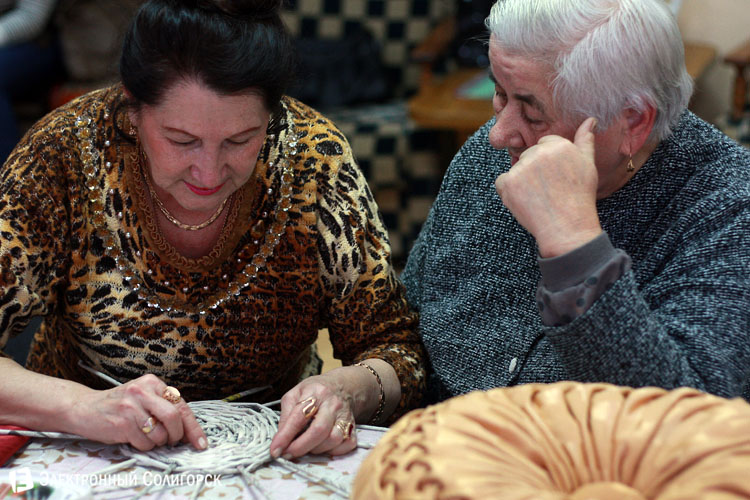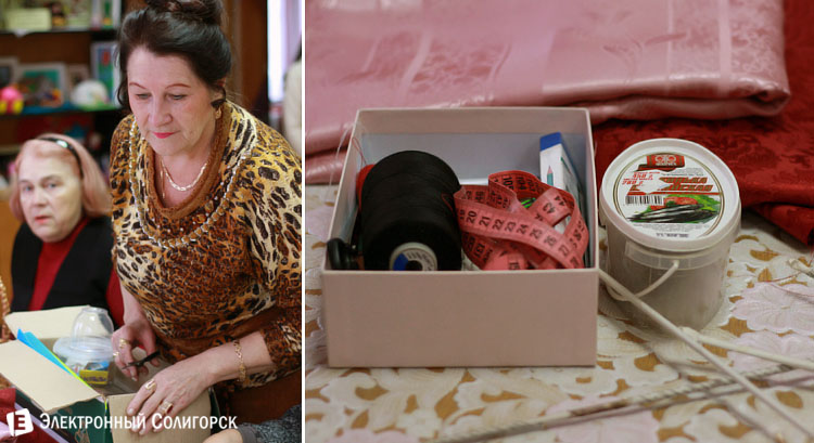 Кружок креативного рукоделия, который сейчас посещают 32 человека, начал свою работу буквально через пятнадцать минут после обучения компьютерной грамотности в том же кабинете. Надо сказать, что у центра соцобслуживания не так уж много помещений, поэтому график очень плотный, а расписание строгое. Так вот, на втором занятии, на котором мы присутствовали, собралось гораздо больше народа, и каждый был или с чем-то уже готовым, или, скажем так, заготовками. Сделанные своими руками подушки, корзинки, игрушки из ткани, даже женские сумки предстали перед объективом нашей фотокамеры. Кстати, новые идеи для своего кружка его руководитель черпает из интернета, освоенного именно в стенах социального центра.
