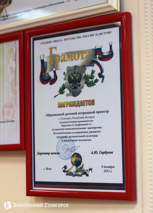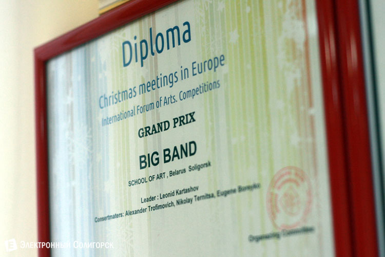 Образцовый детский эстрадный оркестр солигорской Детской школы искусств под руководством Карташова Леонида Ивановича завоевал Гран-при на V Международном форуме искусств "Рождественские встречи в Европе-2013". Этот форум проводился в Братиславе и Вене с 4 по 9 декабря. В нем принимали участие творческие коллективы и солисты из Беларуси, России, Казахстана, Чехии, Словакии, Болгарии, Германии и Австрии. Нашу страну представлял образцовый детский эстрадный оркестр солигорской Детской школы искусств. Во время конкурсной программы музыканты из Солигорска покорили выступлением жюри, которое было представлено экспертами из разных стран СНГ и Европы, и получили Гран-при фестиваля. Оно вручалось тем, кто выступил наиболее качественно и профессионально, совершенно не глядя на номинацию, направление или возрастную группу. Приятно, что лучше всех в этом преуспел именно солигорский оркестр. Хотя, по словам Карташова Леонида Ивановича и Трофимовича Александра Владимировича, конкуренты были более чем серьезные. Особенной похвалы от них удостоился танцевальный коллектив из Екатеринбурга, заставивший зрительный зал смотреть на их номер буквально с открытыми ртами. Но победу солигорчан нельзя назвать случайной. Оркестр был готов к такой победе, за которой, собственно, и ехали. Это вообще один из немногих детских музыкальных коллективов, который всегда держит высокую профессиональную планку, несмотря на возраст его участников и постоянную текучку кадров.