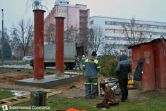 Фотофакт. Возле здания суда в Солигорске идет установка видеотерминала