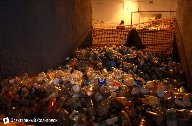 Непригодные для повторного использования отходы затем вывозится на полигон ТБО д.Дубеи. Отобранное сырье при помощи погрузчика доставляется на гидравлический пресс, где прессуется и упаковывается в тюки, которые уже отправляются заводам-переработчикам.