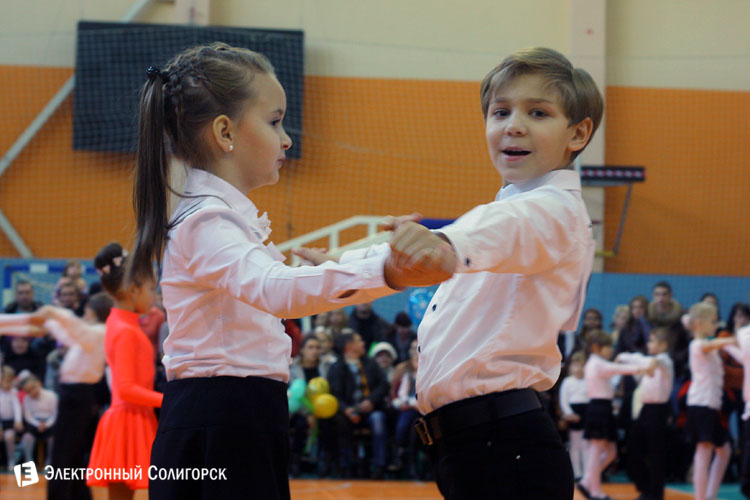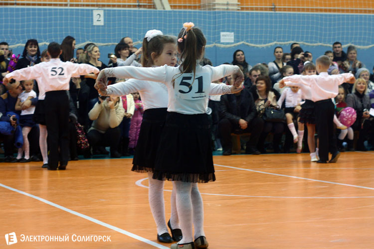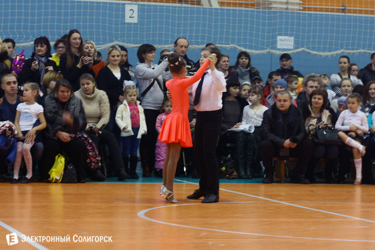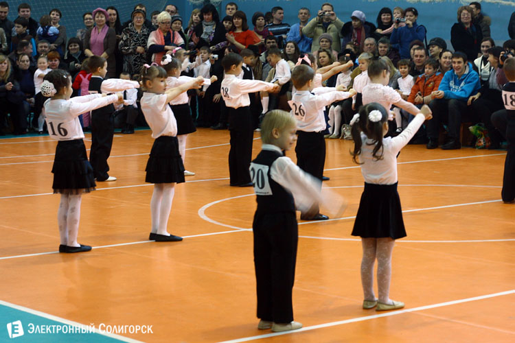 Детский смотр-конкурс по спортивным бальным танцам "Рождественская фиесточка-2013" прошел в универсальном спортивном зале солигорского Спортивно-зрелищного комплекса в воскресенье. Корреспонденты "Электронного Солигорска" побывали на этом мероприятии и понаблюдали за выступлением танцевальных пар. Для многих из участников подобного рода событие - первое в жизни. Все конкурсанты были разделены на две большие группы: первого и второго года обучения. Всего за время "Рождественской фиесточки" в ней поучаствовало порядка 90 пар юных танцоров. Взрослые, в общем-то, тоже не сидели сложа руки и активно поддерживали своих детей. Тем более, что об этом постоянно напоминал тренер этих детей и ведущий конкурса Александр Дудик. Помимо этого, он наряду с судьями и при активном содействии родителей выполнял функции этакого регулировщика, потому что детвора то забывала собственные номера и не сразу выходила на площадку, то кучковалась на ней всей толпой в одном углу, не давая друг другу развернуться. Выглядело это чрезвычайно забавно. Особенно учитывая то, что все без исключения малыши были нарядно, по-взрослому, одеты и зачастую принимали ну очень серьезный вид.