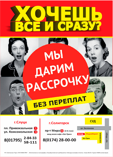 г.Солигорск, пр.Мира, 32 (вход со стороны кафе «Хет-Трик» ул.Заслонова,54А )