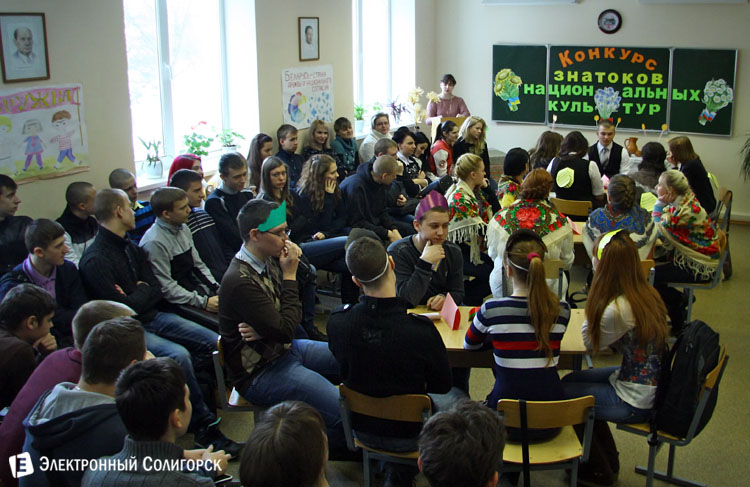 В Солигорском экономическом колледже проходит Неделя национальных культур. В ее рамках проводятся открытые занятия, творческие выступления, интеллектуальные игры. На одной из них - "Конкурсе знатоков национальных культур" - побывали корреспонденты "Электронного Солигорска". Беларусь - страна многонациональная. Это написано в любом учебнике по обществоведению или географии, подчеркивается в большинстве выступлений первых лиц государства и заметно хотя бы по этой инфографике. "Конкурс знатоков национальных культур" был призван выяснить, много ли знают учащиеся колледжа о традициях и привычках не только различных национальностей, проживающих на территории синеокой, но и о белорусских "звычках". Плюс ко всему, любая викторина - это само по себе весело и интересно. В сегодняшней же приняло участие три команды, представлявшие различные специальности колледжа: экономика, программное обеспечение и правоведение. Отдельно хотелось бы отметить, что к собственному узнаваемому облику команды подошли творчески и соорудили себе костюмы сообразно названиям: "Павлинки" были в платках, "Василисы" в чем-то похожем на кокошники, а "Шалёныя бжылкi", благодаря крыльям и усикам, стали похожи на пчел.