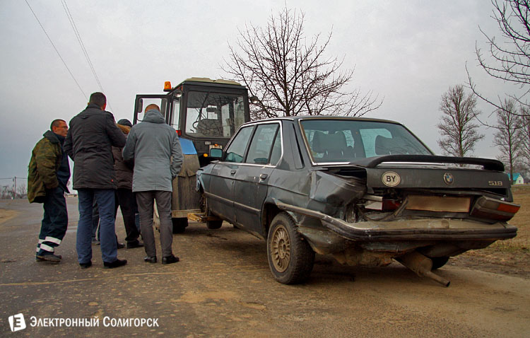 Сегодня утром на подъезде к Солигорску произошло ДТП. На дороге, ведущей от 2 РУ к городу, в районе деревни Кулаки столкнулись БМВ и Ауди. Оба автомобиля двигались в сторону города, и в тот момент, когда БМВ начал совершать поворот налево, то его, что называется, "догнал" "Ауди", врезавшись сзади. В результате столкновения БМВ вылетел в кювет и въехал в расположенное рядом с дорогой ограждение. Как рассказал корреспондентам "Электронного Солигорска" один из участников ДТП (водитель БМВ), вероятной причиной аварии может быть превышение скорости водителем "Ауди" и несоблюдение безопасной дистанции.