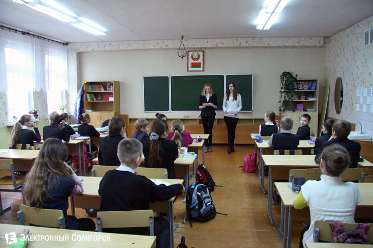 Беседы с школьниками младшего и среднего возрастов проводили не только учителя, но и старшеклассники. На фото как раз одна из таких бесед в параллели пятых классов.