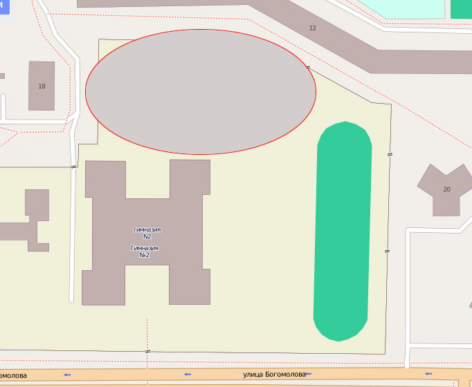 Объект расположен на земельном участке площадью 0,54 га. Участок ограничен с севера – территорией многоэтажного жилого дома № 12 по ул.Богомолова, с юга и востока – территорией гимназии № 2, с запада внутридомовым проездом.