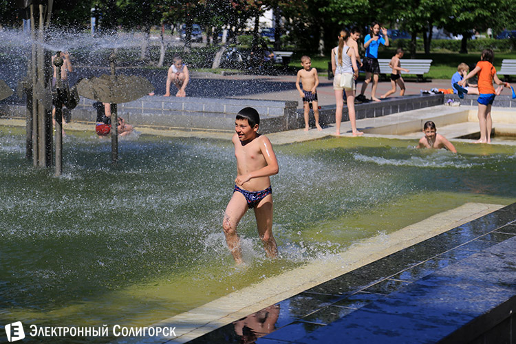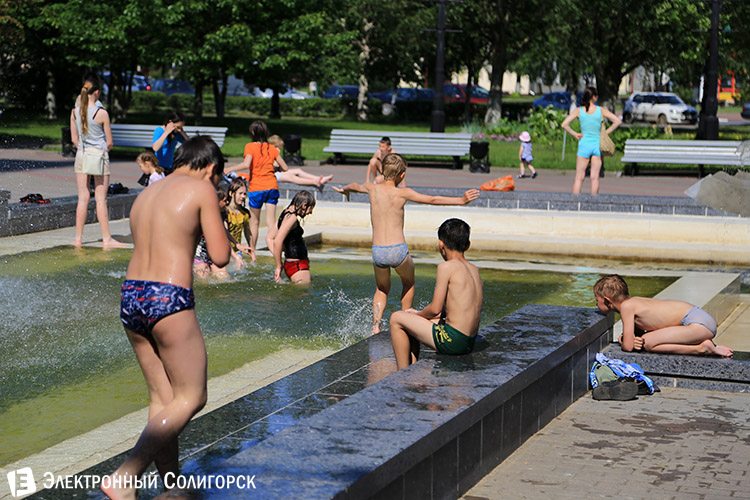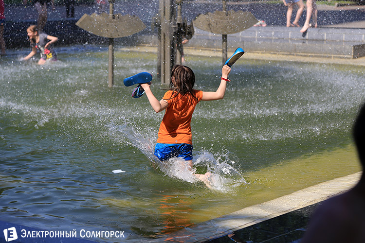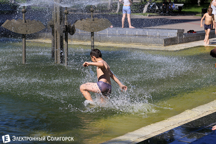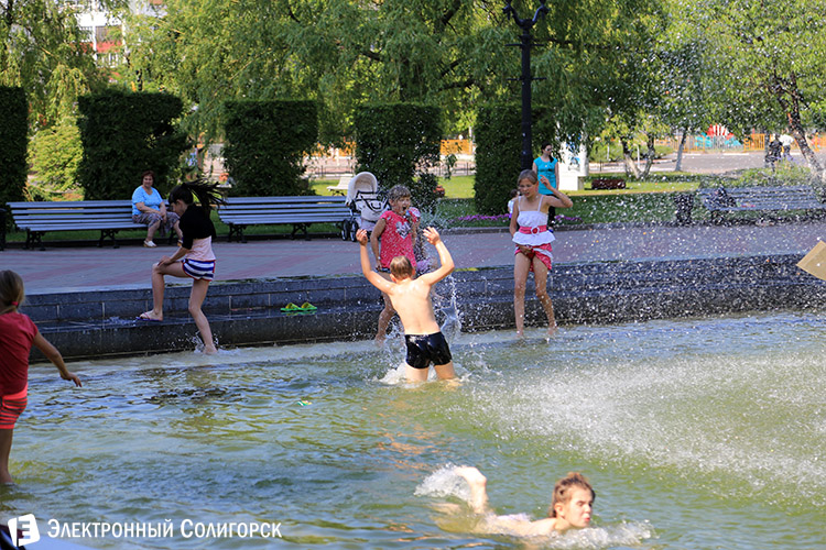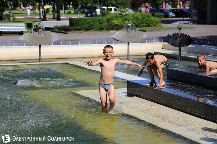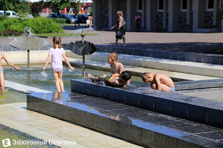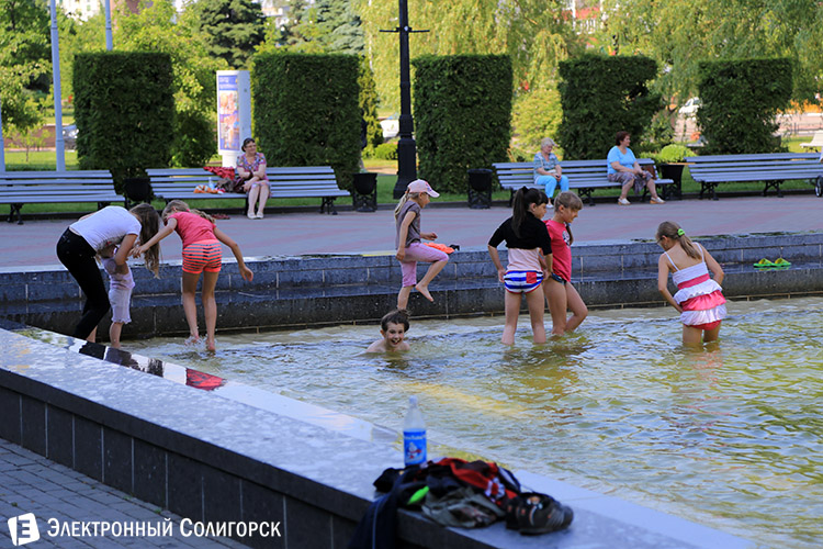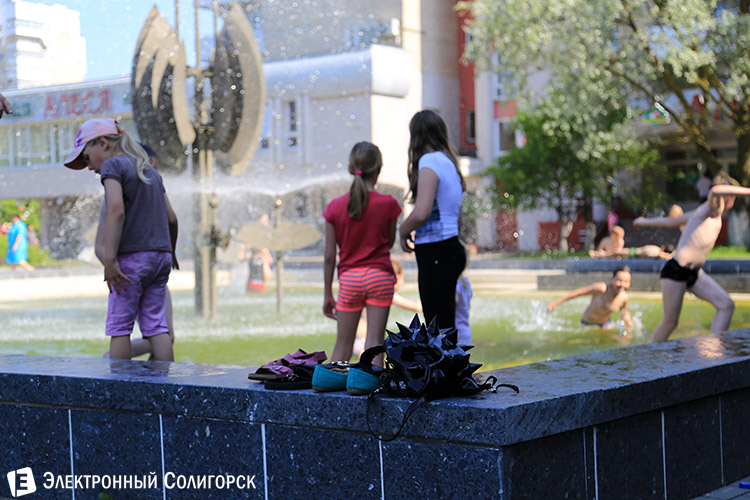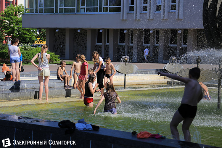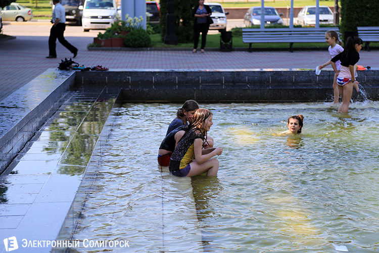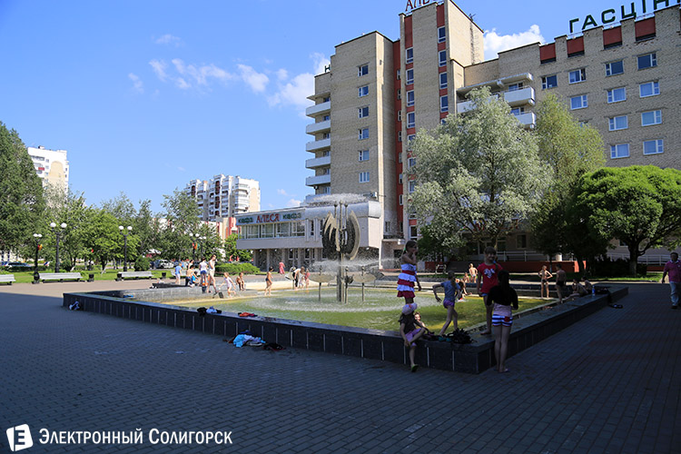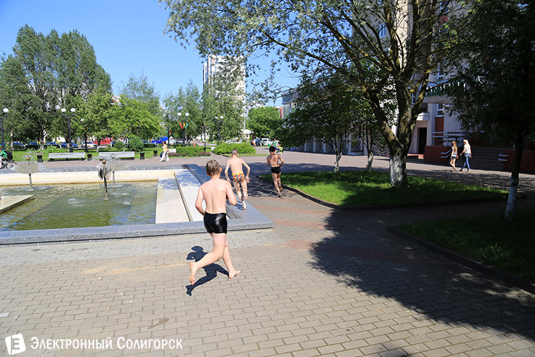 По-настоящему летняя жара нахлынула на Солигорск как-то неожиданно после периода затяжных ливней. А где самое лучшее место, чтобы легче перенести зной? Конечно же, фонтаны! Правда, невозбранно купаются в них только дети, да по определенным дням - десантники. Остальным же просто остается смотреть со стороны и по-светлому завидовать, вспоминая свои детские купания.