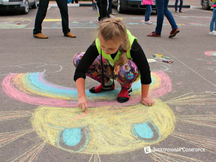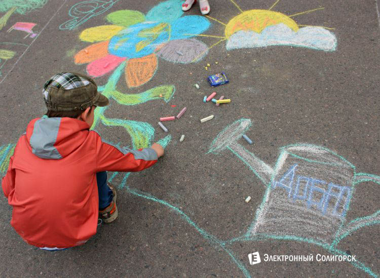 Нельзя не отметить, насколько масштабно прошло мероприятие: в конкурсе участвовало более 40 ребятишек разного возраста. В их распоряжении был целый час времени и цветные мелки в неограниченном количестве. Что из этого получилось – в нашем фоторепортаже!